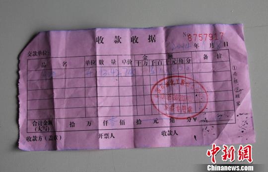 “中石油”加油站开具的收据上盖着“中国石油化工股份有限公司发票专用章”。 崔涛摄