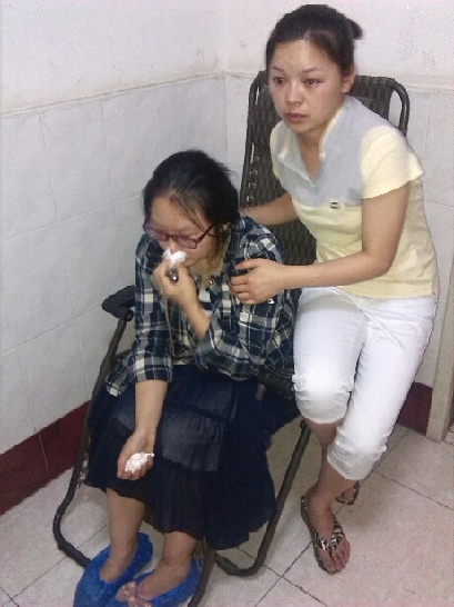 沈远奎的妻子(前)谢龙梅悲伤得说不出话