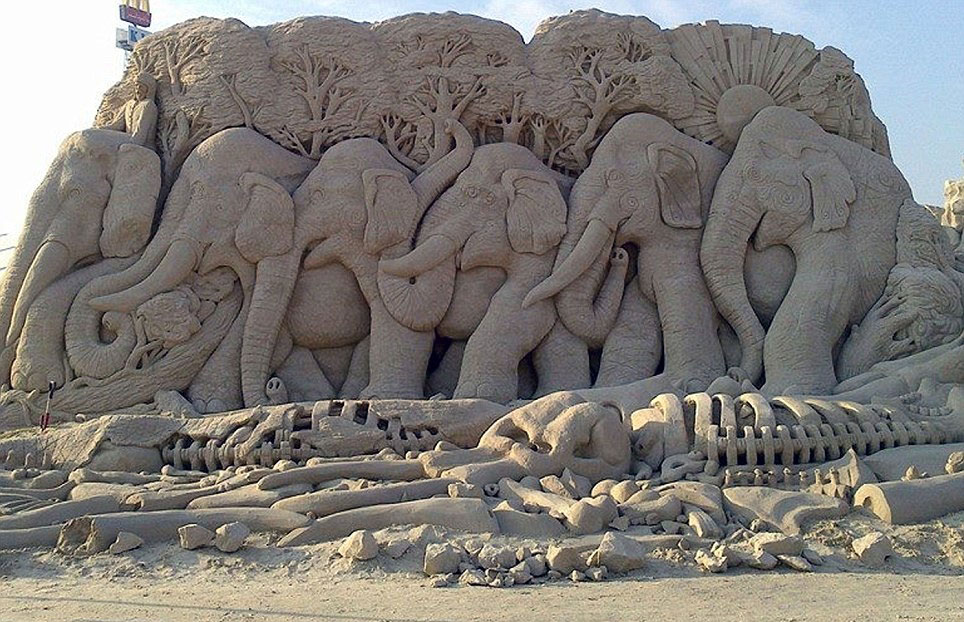 霍格德夫妇的作品包括10吨重的美人鱼,重达40吨的15个巨人沙雕等。其中一个巨人是按照《圣经》中大卫(David)与巨人哥利亚斯(Goliath)之间的战斗故事雕刻的,里米花费9天时间才完成。霍格德夫妇的沙雕中还有许多历史人物,比如汉尼拔(Hannibal)坐在50吨大象身上的场景。(杨柳)
