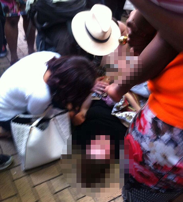 许多购物者和服装店工作人员聚拢过来,救护车人员扯起床单,以保护这位新妈妈的隐私。