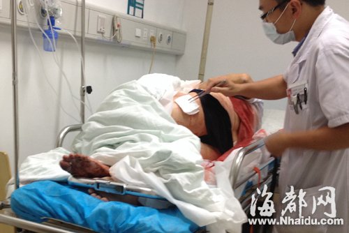 医生说,老人臀部有两处刀口,约三四厘米宽,其中一处十几厘米深,共缝合了三四针,目前暂无生命危险。