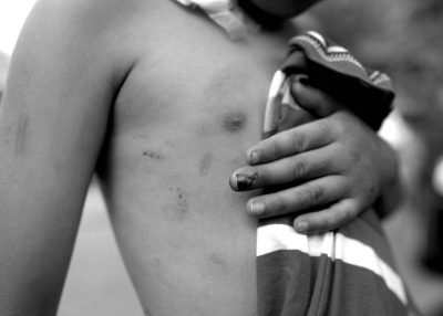 令邻居心疼的是,小文的胳膊上和腿上总是新伤盖旧伤,“手指甲盖里都化脓了,没有人给包扎,他就到水龙头前冲洗一下。水比较凉,可能冲一下,手就不疼了。”有时邻居心疼孩子,会把他带到家里涂一些药膏,但是过几天又会有新的伤口。邻居与小文的“继母”交谈时,也曾多次提醒她不要打孩子,但是她总是称孩子太笨。