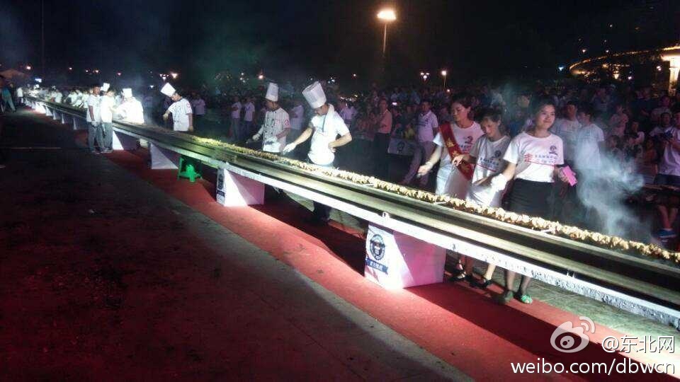在万名中俄游客的见证下,“世界最长肉串”15日晚在绥芬河市诞生,长度为112.374米,刷新官方吉尼斯纪录。据了解,此前的吉尼斯纪录是日本冲绳县石垣市在2011年创造的,长度为107.6米。