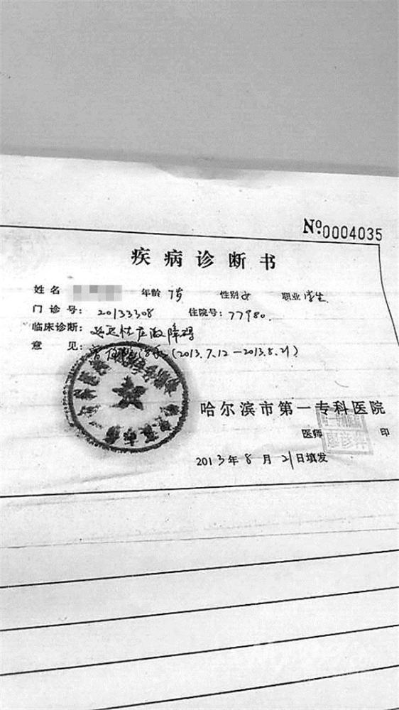(经市第一专科医院诊断,炀炀患上“延迟性应激障碍”精神疾病)