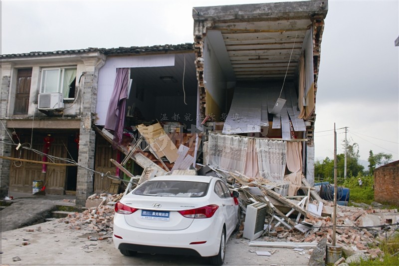 原标题:女儿开新车回娘家 撞塌了娘家两间房