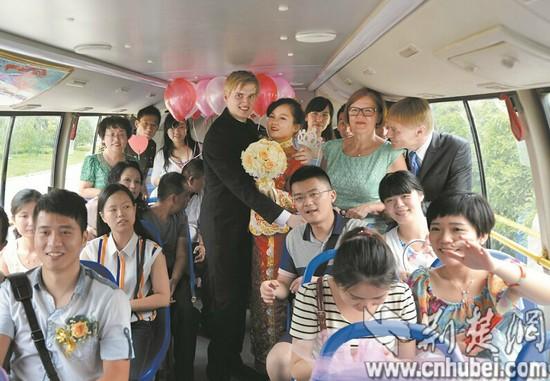 上午8时许,一辆崭新的291路双层公交车,停在汉口解放大道一酒店门口。来自芬兰的新郎马蒂穿一身中山装,他的父母满脸堆笑,也随着儿子前往解放大道同馨花园小区迎亲。