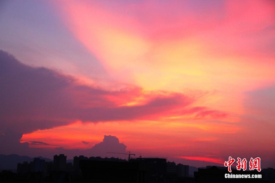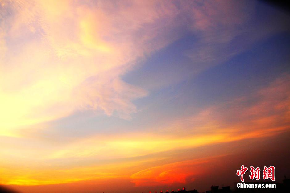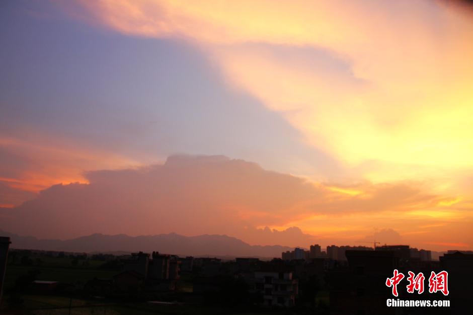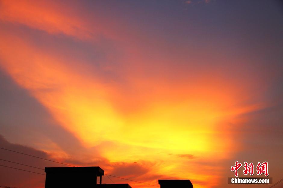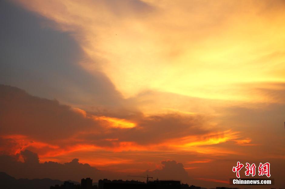 7月23日傍晚,夕阳西下,在江西省遂川县西边天空,晚霞浓艳似火,犹如烧红了天空。绚丽的晚霞就像给天空镀了一层亮闪闪的黄金,色彩奇艳,婀娜多姿,弥漫了大半个天空。 李建平 摄