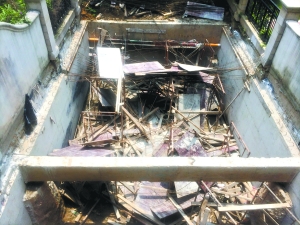 “地基都已经裸露在外面,很危险的,当初他们挖土时震动太大,我们家的墙壁、地砖已经出现裂缝。”业主称,该别墅为联排复式楼,几栋房子事实上是连接在一起的,他担心F1-3户地下挖得太深,使得连接在一起的几户房子重心偏移,迟早会出大事,“我们就想让这一户把挖出来的土都填回去,不然太危险了。”