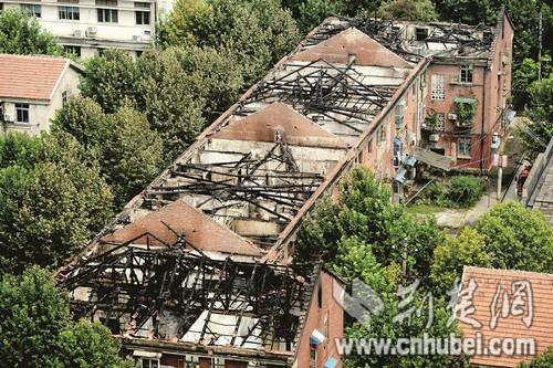 (失火红房子的顶层已全被烧空)