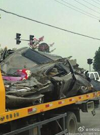 原标题:一装载泥土土方车侧埋小轿车一家2死1伤(图)
