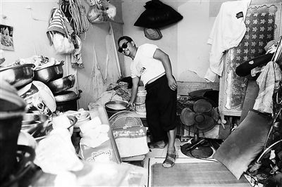 在房山区黑古台村,程传六每月花100元租来的10平米小屋就是现在这一家人的“蜗居”。锅碗瓢盆等各种生活用具几乎堆满了半个屋子,贴着墙根的是一张双人床,几床脏兮兮的被褥随意地卷在床头,这就是彩虹和三个孩子睡觉的地方。紧挨着门口的地上是一张破凉席,这是程传六睡觉的地方。