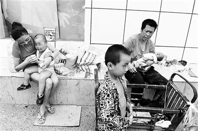 程传六说,自己挣钱养家太忙,顾不上去看孩子。不过,现在当彩虹带着孩子在他“趴活儿”的附近乞讨时,程传六还是会偶尔走过来照看一下孩子们。中午时分,他走到推车前,随手拿起搁在台阶上的奶瓶,将奶嘴冲着金桥的小嘴塞了过去,挤了几下又拔了出来,不少奶瞬间从孩子的嘴巴中溢出来,孩子还呛了几下。