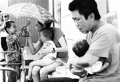 一会儿,老程又给金桥换了纸尿裤,纸尿裤上沾着屎尿。“你倒是给孩子洗洗呀。”旁边一个小贩看不过去地责问道。“没事,拿布给他盖上就行。”面对责问,老程面无表情,很坦然。“嗯,孩子都好几天没洗澡了。”在路人的提醒下,老程又走到推车跟前,端详着孩子腿上的很多红色突起,“这不是热的,不是痱子,蚊子咬的吧,应该没啥事。”