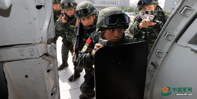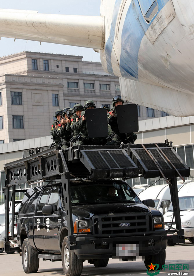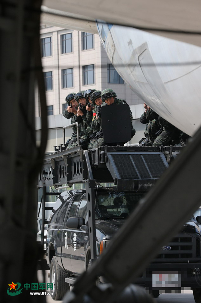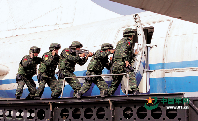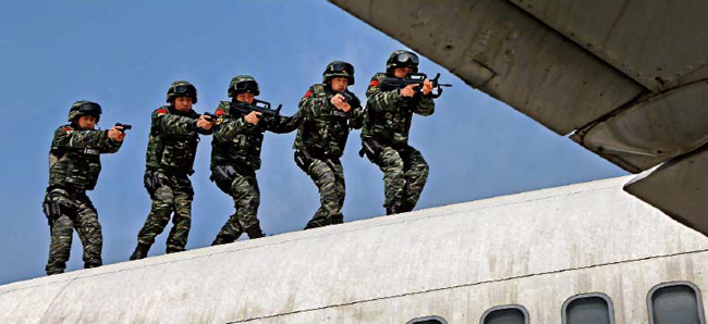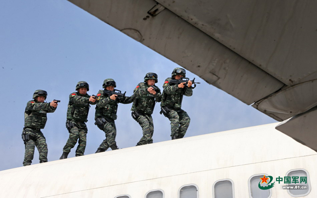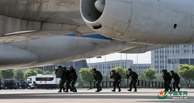 猎鹰突击队进行反劫机训练。 本网记者乔天富 摄