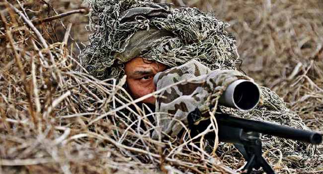 狙击,是“猎鹰突击队”队员们的看家本领。这是受到习主席接见的狙击手王道斌在训练中。