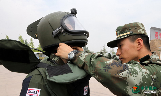 猎鹰突击队装备精良。这是排爆训练中,队员们穿着制式排爆服的情景。本网记者乔天富 摄