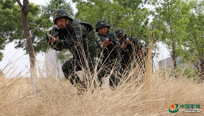 猎鹰突击队进行战斗小组搜索前进训练。本网记者乔天富 摄