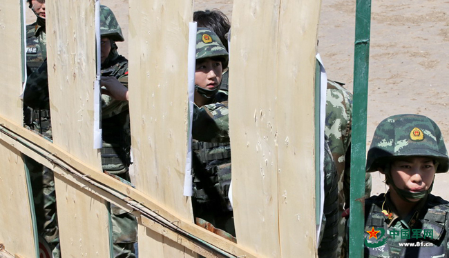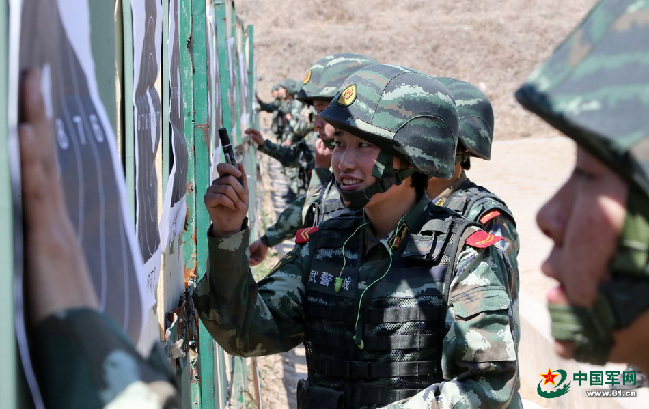 猎鹰突击队女特战队员进行实弹射击后检靶。本网记者乔天富 摄
