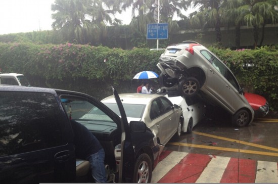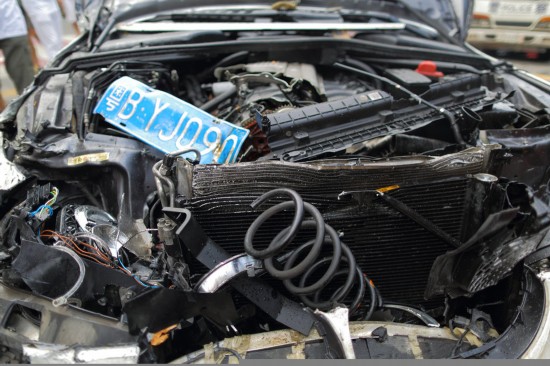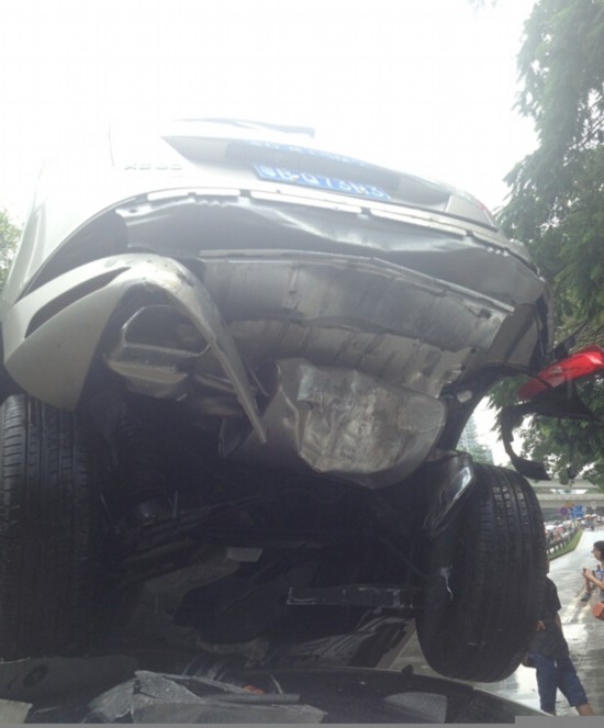 图为被撞烂的轿车。