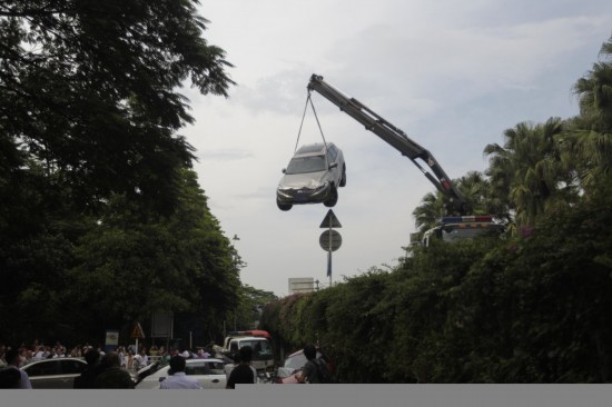 图为吊车正在救援。