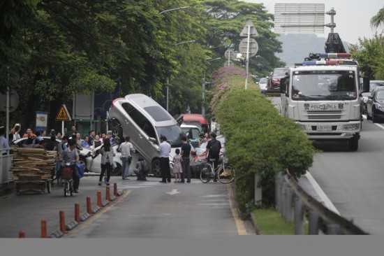 2014年8月4日,据深圳交警微博通报,4日13时50分左右,泥岗西路转市二医院路段发生6车相撞事故。事故中,5辆为小车,最后一部车为大货车。目前有2人在医院检查。