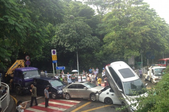 深圳新闻网讯 据@深圳交警官方微博消息,8月4日13时50分左右!泥岗西路转市二医院路段6车相撞!目前有2人在医院检查!事故中,5辆为小车!最后一部车为大货车!据现场民警了解,大货车司机称:刹车失灵!