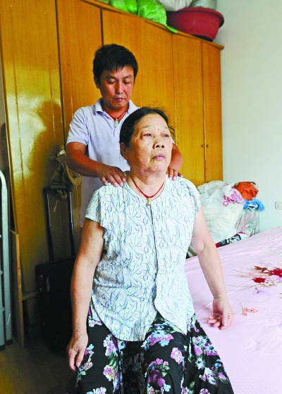 (程卫红为岳母捏肩膀 通讯员 黄红波 摄)