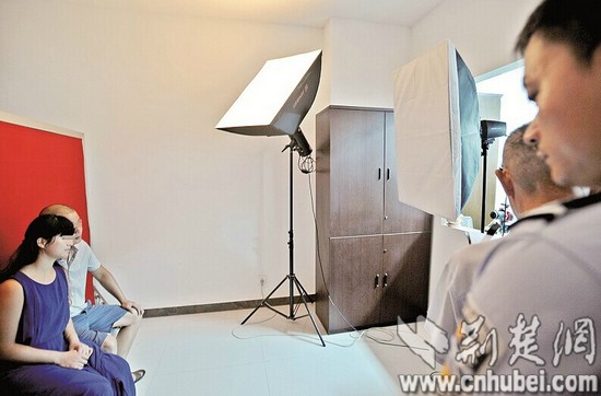 电梯上到二楼。进入照相室后,王亚拿出事先准备好的一件新上衣,狱警为章强打开手铐后换下囚服,照了结婚登记照。