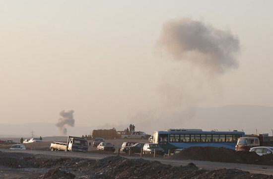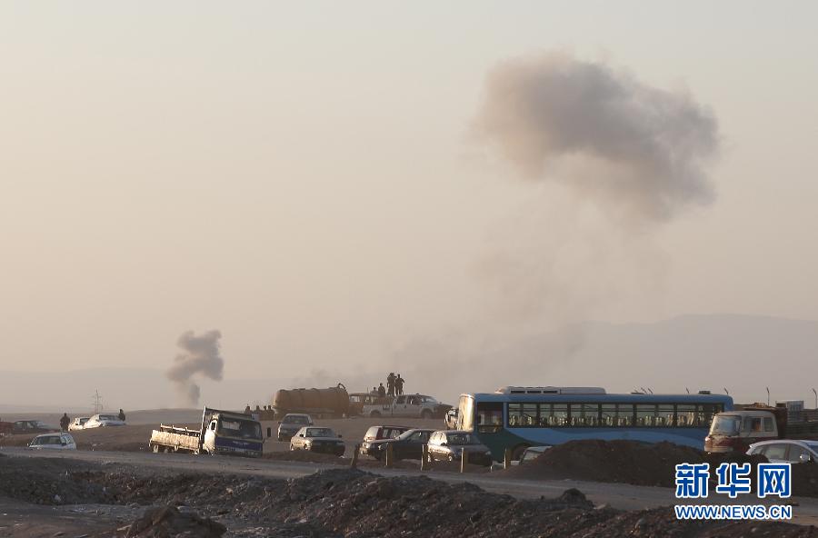 8月8日,在美军空袭过后,伊拉克北部城市埃尔比勒郊外的一个检查站附近烟雾升腾。美国五角大楼8日说,美军当天已向“伊拉克和黎凡特伊斯兰国”极端组织在伊拉克北部的目标发动空袭。美国有线电视新闻网报道说,空袭目标是该组织用于攻击伊北部城市埃尔比勒库尔德守军的火炮阵地。美军向火炮阵地投下两枚500磅的激光制导炸弹。
