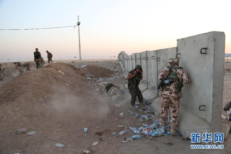 8月8日,在伊拉克北部城市埃尔比勒郊外的一个检查站附近,库尔德武装组织成员躲避在掩体后。美国五角大楼8日说,美军当天已向“伊拉克和黎凡特伊斯兰国”极端组织在伊拉克北部的目标发动空袭。美国有线电视新闻网报道说,空袭目标是该组织用于攻击伊北部城市埃尔比勒库尔德守军的火炮阵地。美军向火炮阵地投下两枚500磅的激光制导炸弹。