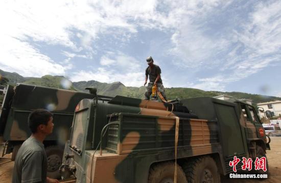 8月10日,由防化部队搭建的鲁甸地震震中龙头山安置点“沐浴帐篷”建成,将免费服务安置点民众洗浴,解民众八天未洗澡之困。中新社发 杨可佳 摄