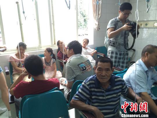 中新网金华8月14日电(见习记者 奚金燕)“好好的一顿喜酒,喝成现在这样愁眉苦脸!”14日上午,因一直上吐下泻,53岁的老陈被送到了浙江浦江人民医院接受输液治疗。到了医院后,老陈发现整个急症厅都挤满了“熟面孔”,粗粗一数有近百人,他们都是同一时间在同一饭店吃饭后,出现了呕吐、腹泻等疑似食物中毒症状。