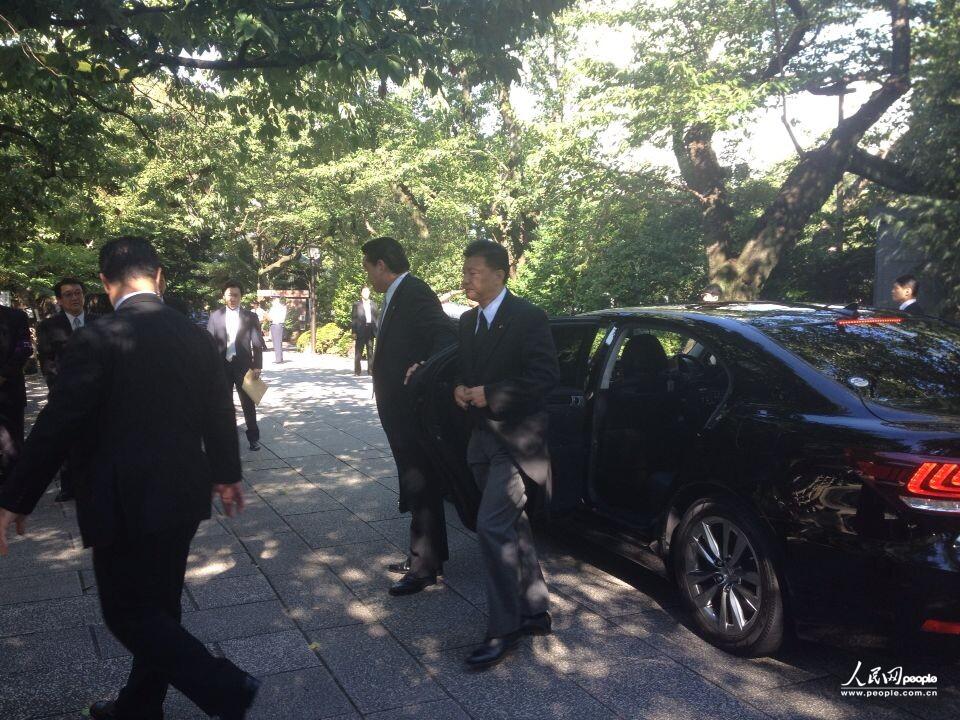 当地时间8月15日上午,日本内阁成员古屋圭司参拜靖国神社。(人民网 赵松摄)