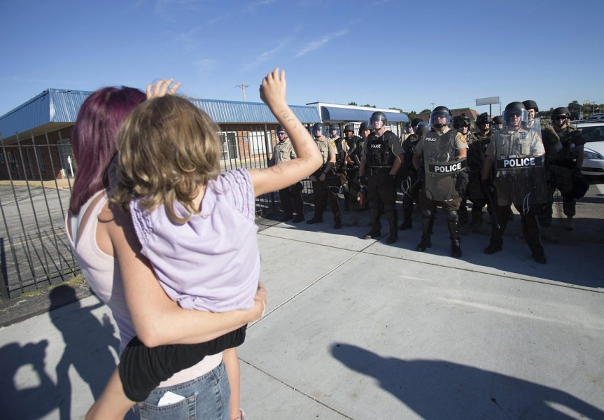 据警方称,发生骚乱的原因为8月9日在警车中一名叫迈克尔.布朗的18岁非洲裔青年与一名警官争夺手枪时被打死,这起事件在当地引发抗议。