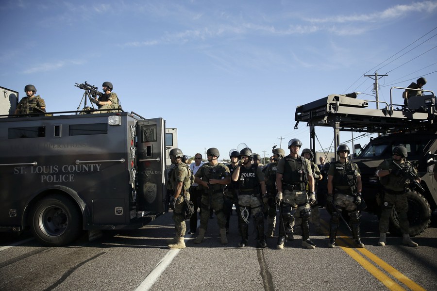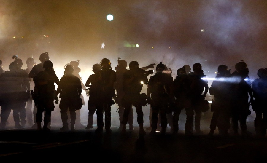 当地时间8月13日,美国密苏里州小城弗格森,民众发生大规模骚乱,警察动用催泪弹驱散抗议者,目前尚无人员伤亡报告。 当地时间2014年8月13日报道,美国密苏里州小城弗格森,一名非洲裔青年被警察打死引发持续骚乱,警察动用催泪弹驱散抗议者。据警方称,这名青年名为迈克尔-布朗,现年18岁,8月9日在警车中与一名警官争夺手枪时被打死。