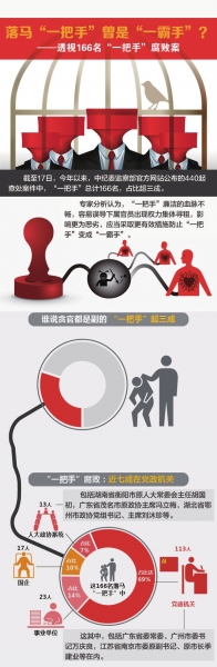 截至8月17日,中纪委监察部官网今年以来公布的400余起查处案件中,涉及“一把手”166名,在落马官员中占比超三成。反腐剑指“一把手”,也让人反思权力枢纽如何才能高效、安全运转?