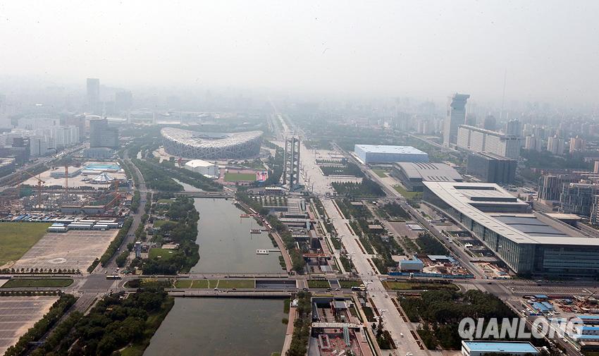 在高处平台奥林匹克公园尽收眼底,可鸟瞰鸟巢和水立方(千龙网记者戚连民摄)