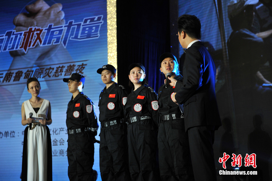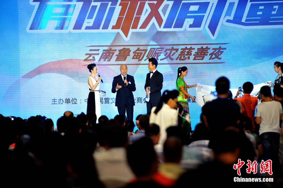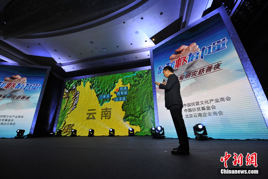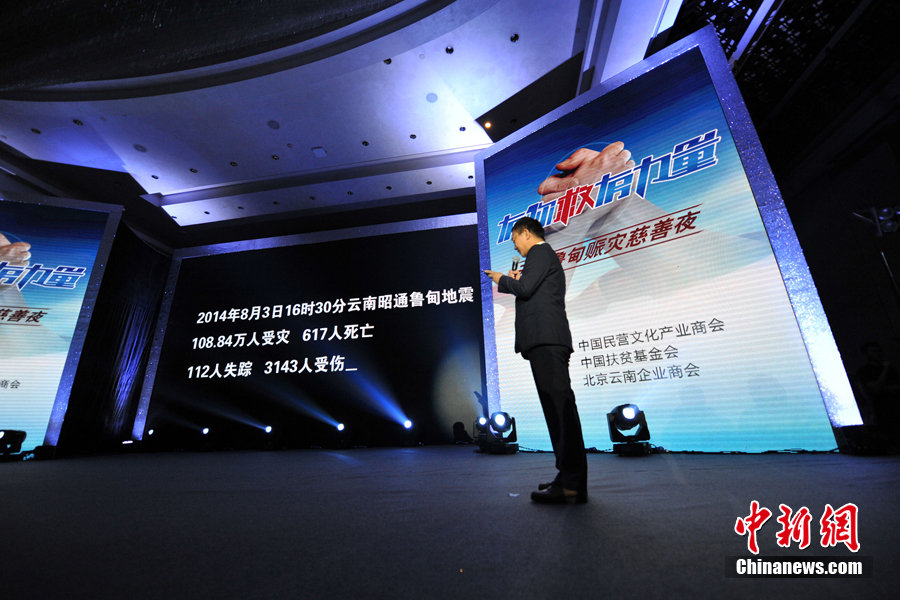 8月19日晚,由中国民营文化产业商会、中国扶贫基金会、北京云南企业商会在北京云南大厦联合举办了主题为“有你救有力量”的云南鲁甸群星赈灾慈善活动。本次活动汇聚了近百名演艺界、体育界爱心人士和企业家、慈善人士,活动以“义拍”、“义卖”、“义捐”、“义演”的形式筹集善款。据中国扶贫基金会相关负责人表示,当晚共筹得1106万元善款,所有款项和物资都将用于鲁甸灾后重建。图为图为郎永淳以现场播报的形式回顾这场突如其来的灾祸。 中新网记者 金硕 摄