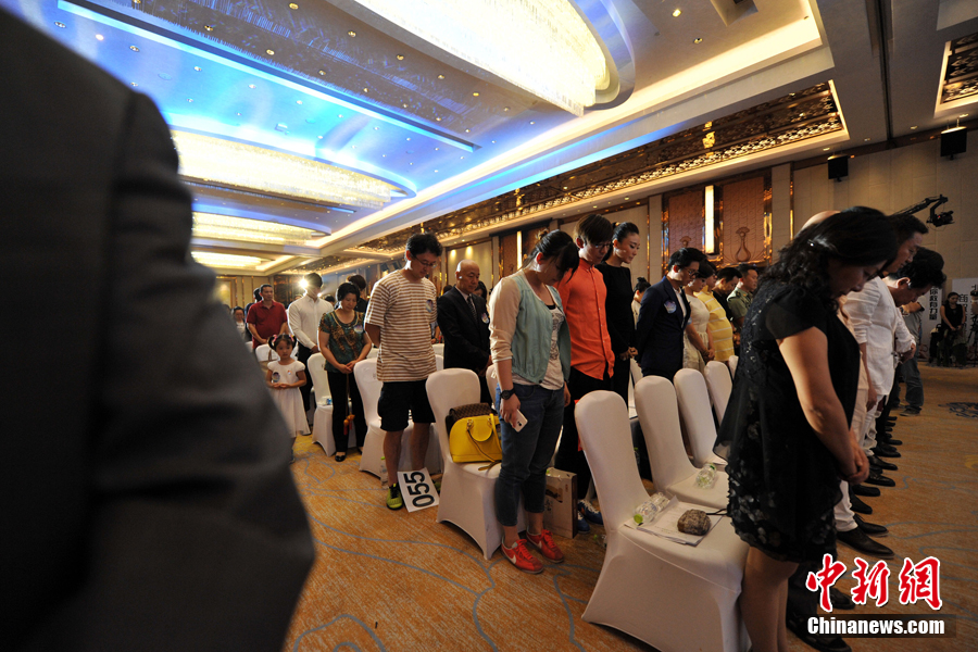 图为现场明星嘉宾为鲁甸遇难者集体默哀。 中新网记者 金硕 摄