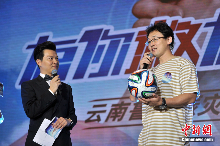 图为孙继海带来明星签名足球拍卖筹集善款。 中新网记者 金硕 摄