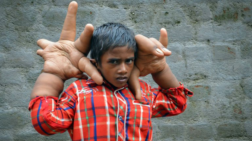 Kaleem出生于一个贫穷的家庭,他的父母月工资仅有25美元,父母微薄的工资根本无法支撑Kaleem 的医疗费用。现在,这名男童的每只手已经重达8公斤。 当Kaleem的病情被媒体报道后,当地的专家们为其会诊,并指出他们从未见过这种病情,另外,他们尚未查出具体是哪种基因突变而导致巨手形成,因而尚未对这名男孩做基因筛查。