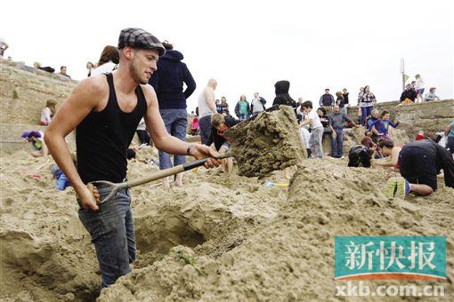 闻讯蜂拥而来的游客挤满了沙滩,大人用铁铲,小孩用玩具铲,甚至有“专业人士”用上了金属探测器。