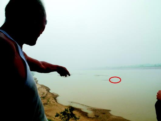 村民傅先生说,老太太当时就躺在河心那座小沙洲边。