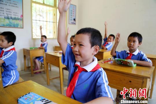 8月31日,在广西柳州市融安县大坡乡山锁小学,学生们举手回答问题。 黄国良 摄