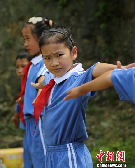 8月31日,在广西柳州市融安县大坡乡山锁小学,学生们列队准备做操。 黄国良 摄