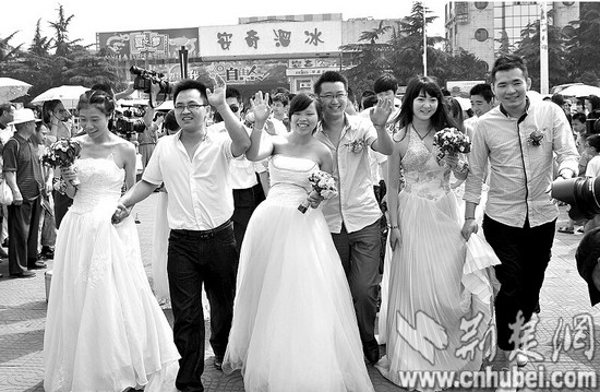 谢绝大操大办,倡导简约新风。图为襄阳市一场大型集体婚礼。 (视界网安富斌资料图片)