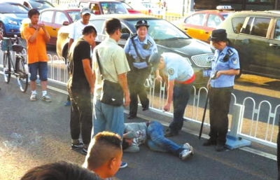 附近小贩说,男子跑出地铁站后先是向西侧的安定路跑了几十米,几名地铁巡警和地铁工作人员紧随其后,“那个男的精神很不正常,一边跑一边大喊‘坏人,坏人抓我’”。