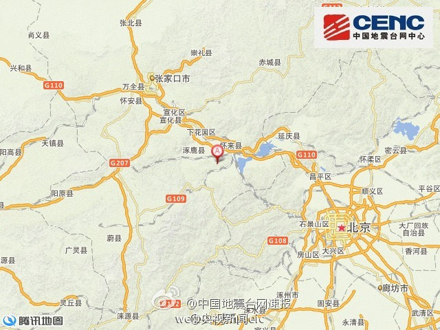 河北涿鹿县附近发生4.2级左右地震 北京等地有震感
