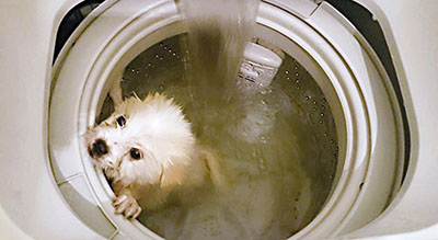 Jacky Lo的facebook账户上月中曾发布洗衣机洗狗照片,更指小狗“冲凉”后死亡。图自香港《文汇报》