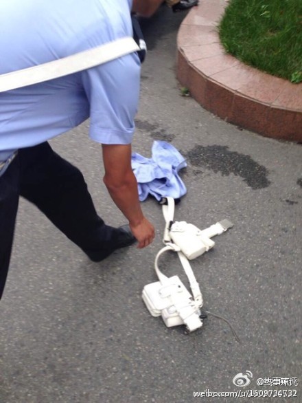 脱掉的制服及装备掉在地上(图片来自网友微博)